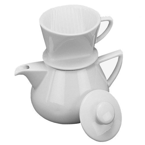 The HIC Porcelain Drip Coffee Maker includes a porcelain pot with lid and a porcelain #1 coffee filter cone. HIC Porcelain is oven, broiler, microwave, freezer and dishwasher safe. Capacity: 2.25 cups Glazed white porcelain Includes matching porcelain #1 coffee filter cone Dishwasher safe ... Read More >>>